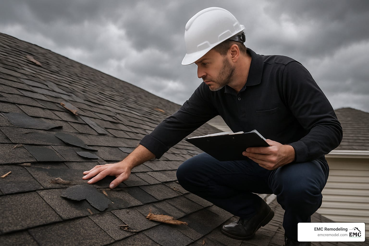 Your safety is the top priority. Stay on the ground and visually inspect your property. Take photos of any visible damage to your roof, gutters, siding, and AC unit. Then, call a trusted local roofer like us for a free, professional inspection. It’s crucial not to file an insurance claim until a professional has confirmed there is sufficient damage, as filing an unnecessary claim can negatively affect your policy.